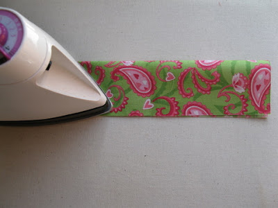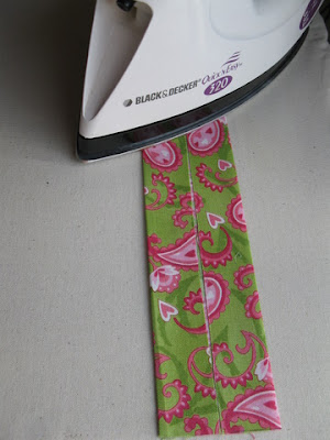 Once the piece is turned right side out, iron flat with the seam along the bottom.