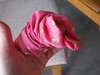 Turn this piece right side out but putting your hand into the opening. Grab the opposite end with your fingertips and pull through.