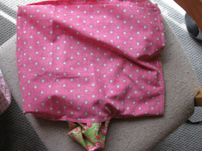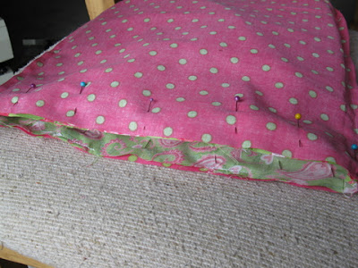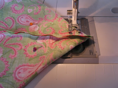 With RIGHT SIDES together, fold the outer fabric in half widthwise (creating a piece 12 1/2" (14.5") x 14 1/2"). Pin along both sides (leaving the top open). Sew along both edges.