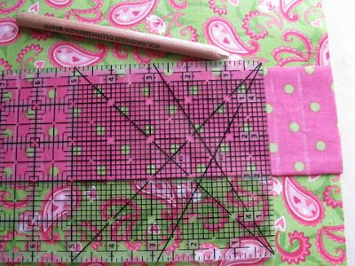 Pin to keep fabric from shifting Using your ruler and a pencil, locate and mark the place on the triangle that is 1.5" wide. Sew along the line.
